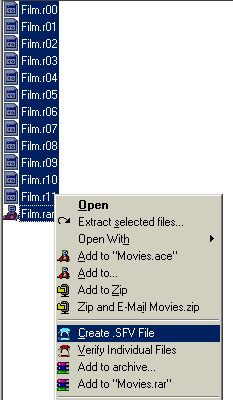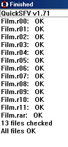 over et RAR/ACE arkiv. QuickSFV kan kontrollere om de filer man nu har